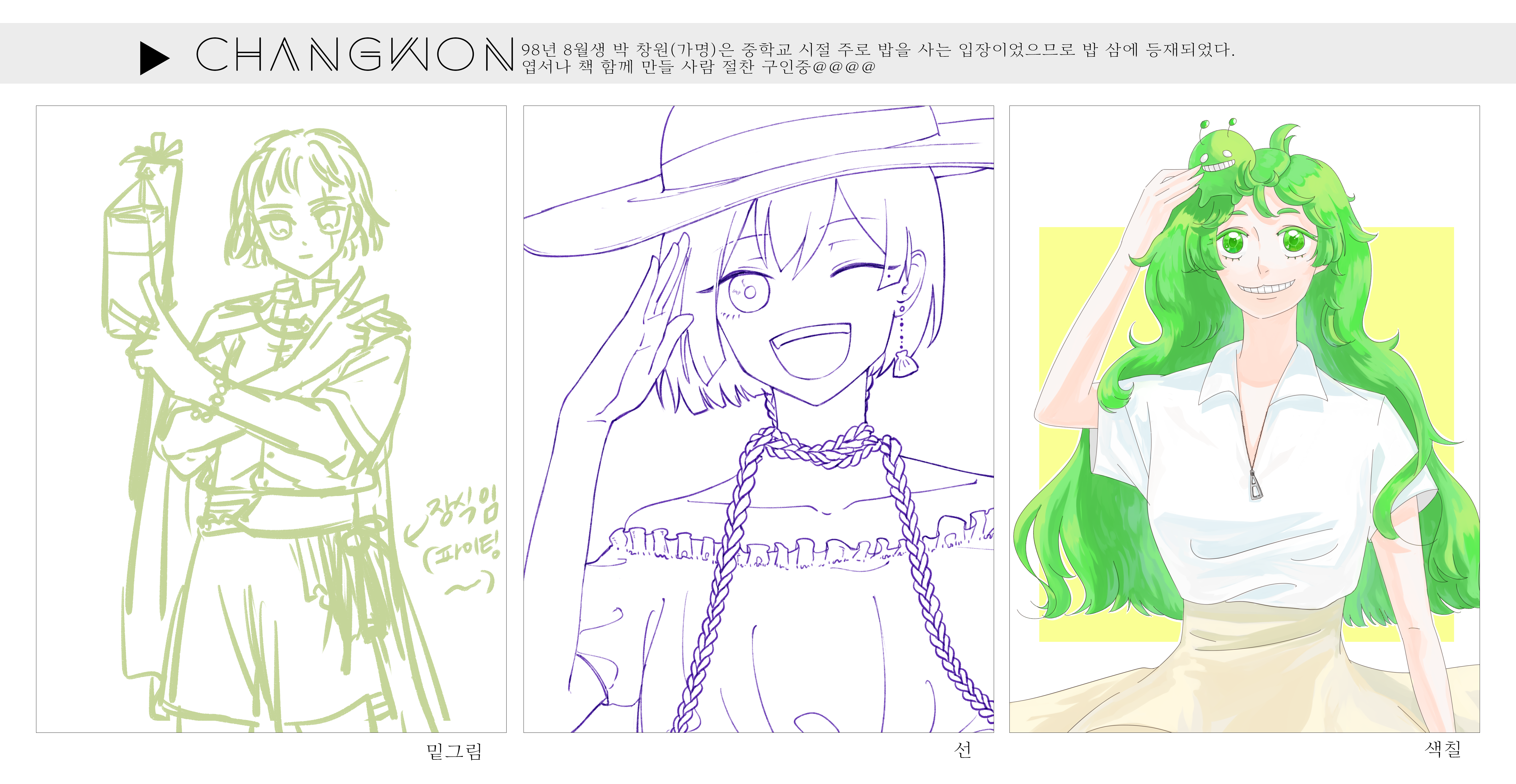 살려서 한번더 시도해볼랬는데 이때쯤 모두가 일정에 치여서 혜짱거 색칠(원래 내담당) 조뺭그림 첨부터 끝까지 파쿠리(조뺭참여안함) 내그림 배충 배색(원래 선따기까지만임) 해서 자체완성함